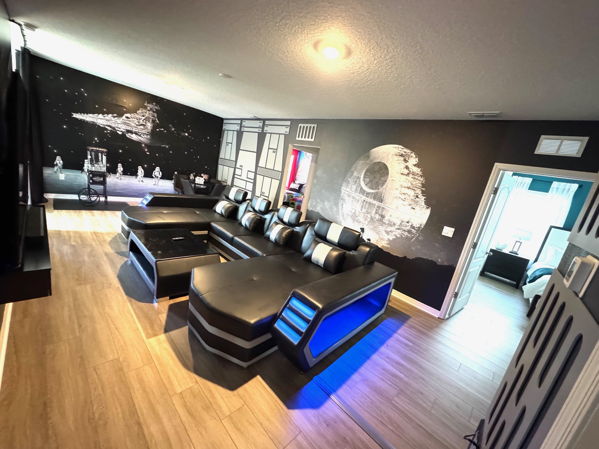 LED Leather Sectional With Curved Arms