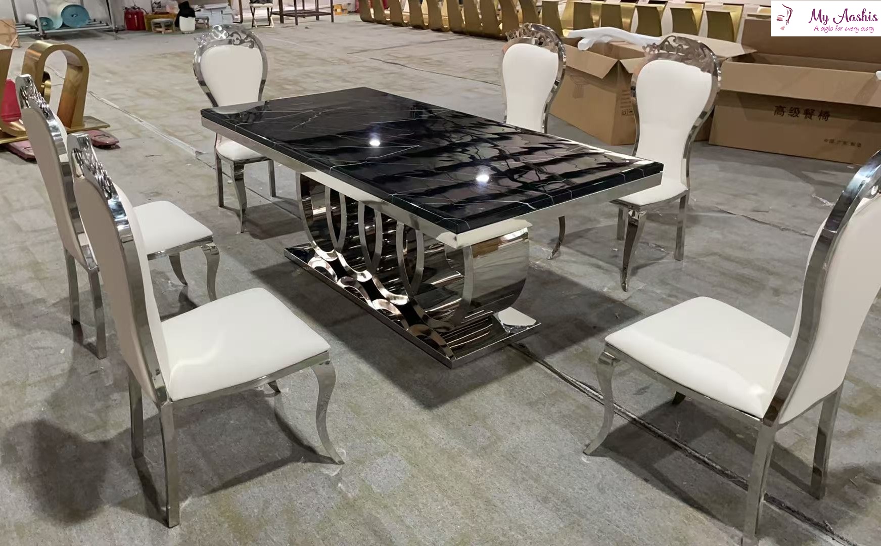 - Marble slab – This is extremely heavy in weight and is very fragile. Traditionally, it has been used for decorating floors and walls and is used mostly in traditional dining tables. Since some customers still demand marble slabs, MyAashis provides this option as table top. Weight is 220 LBS for standard rectangular marble size of 79 inches long.