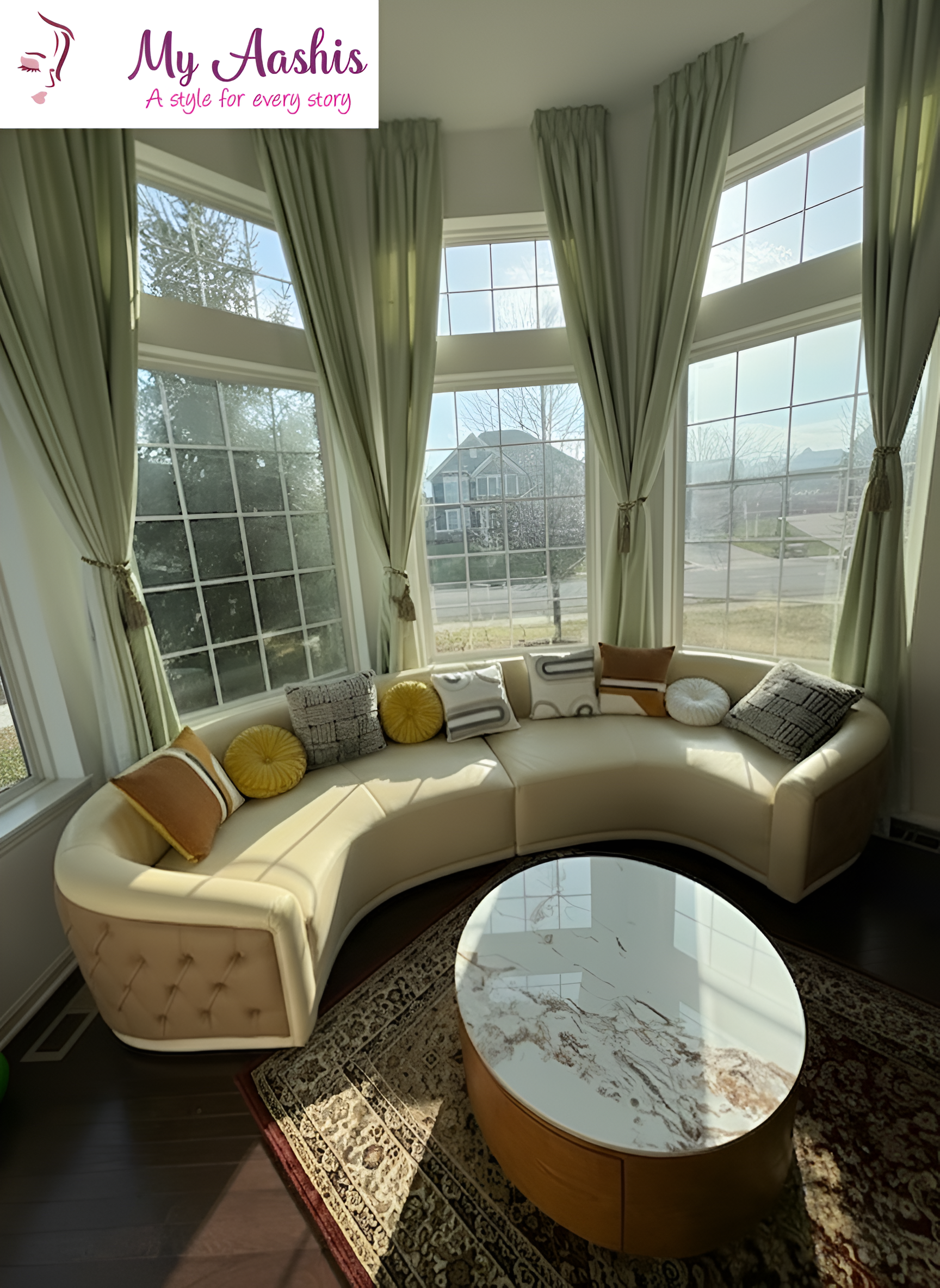 Every effort is made to provide high quality, accurate images to assist you in selecting your furniture. However, images may vary in color depending on a number of factors including but not limited to individual computer monitor color settings, photography, lighting and natural variations. Therefore the item you receive may not be an exact match to what you see on your computer screen as physical and digital colors differ slightly in some cases. Sometimes measurements in furniture size are rounded off and thus may vary slightly from the description. If you require precise dimensions or actual upholstery color, please contact MyAashis by phone or email for further assistance or order sample swatch.