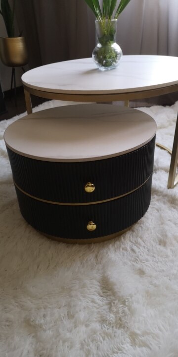 Round Italian Circular Marble Top Coffee Table With Double Drawer System