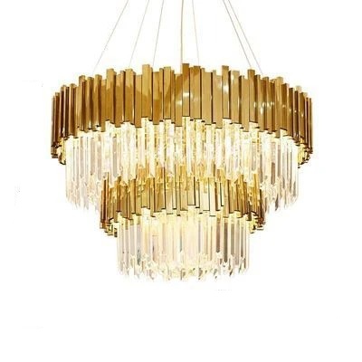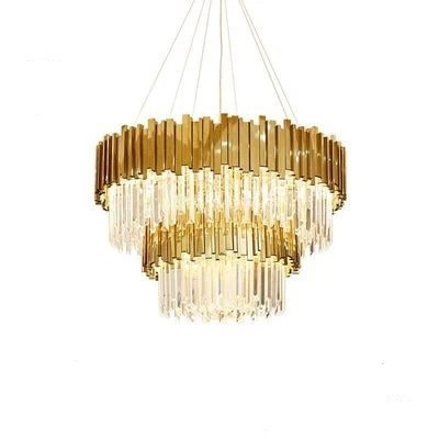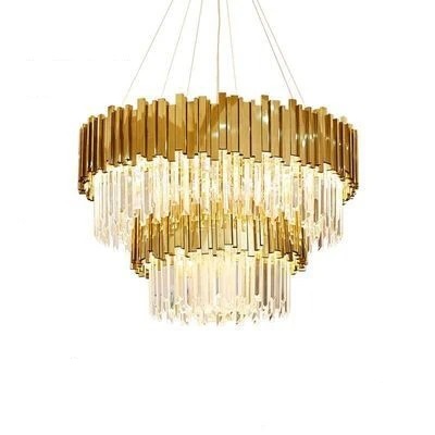 Two Tier Round Crystal Chandelier With Suspension And LED Lamp