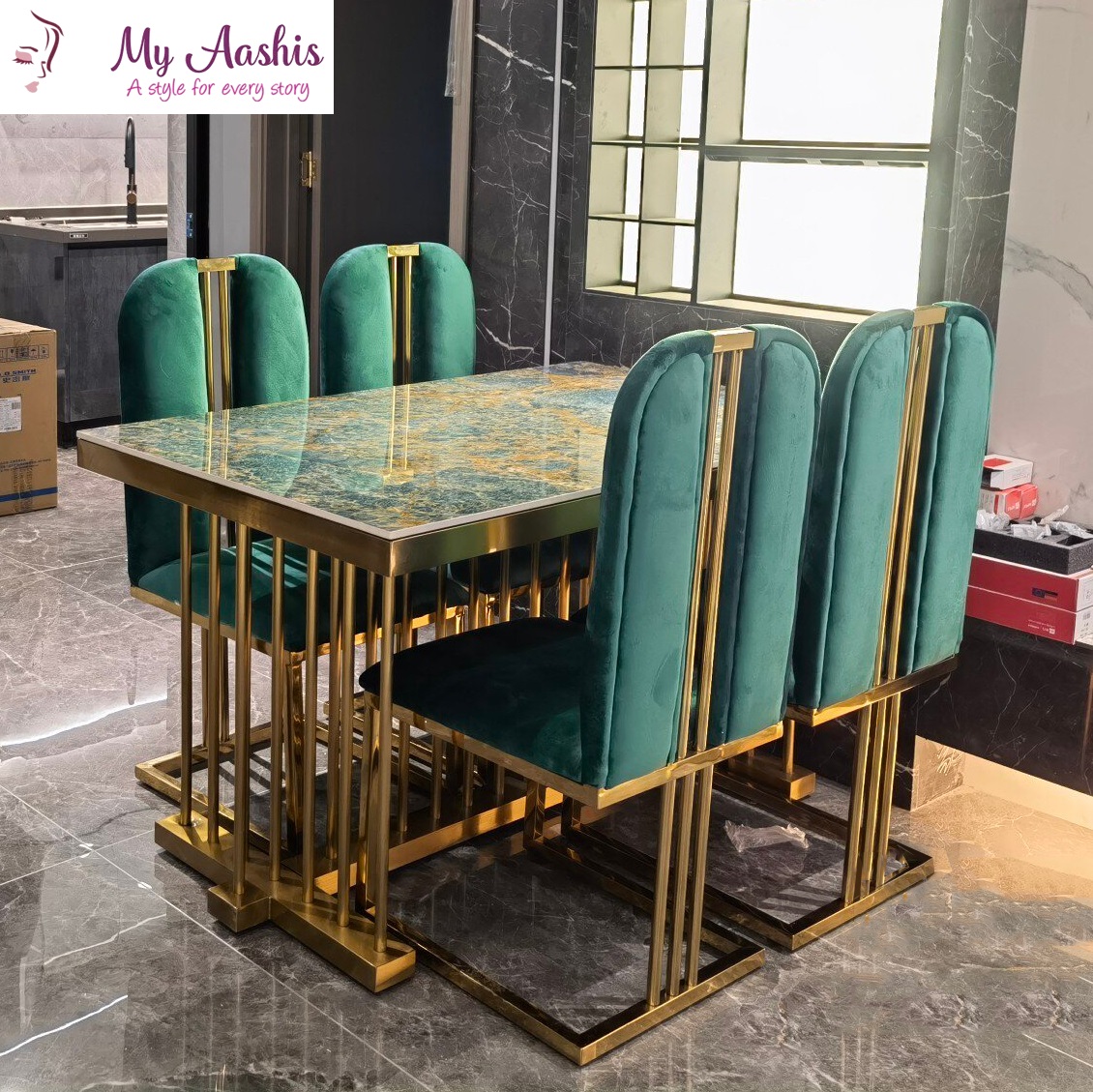 - Marble slab – This is extremely heavy in weight and is very fragile. Traditionally, it has been used for decorating floors and walls and is used mostly in traditional dining tables. Since some customers still demand marble slabs, MyAashis provides this option as table top. Weight is 220 LBS for standard rectangular marble size of 79 inches long.